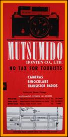 | 1961 Mutsumido Honten Catalogue ( Japan ) Full binoculars catalog: 4 scans/ 8 pages Brands: Nikon, Yashica, Cannon, Olympus, Mamiya Contents shown: binoculars, cameras, transistor radios |