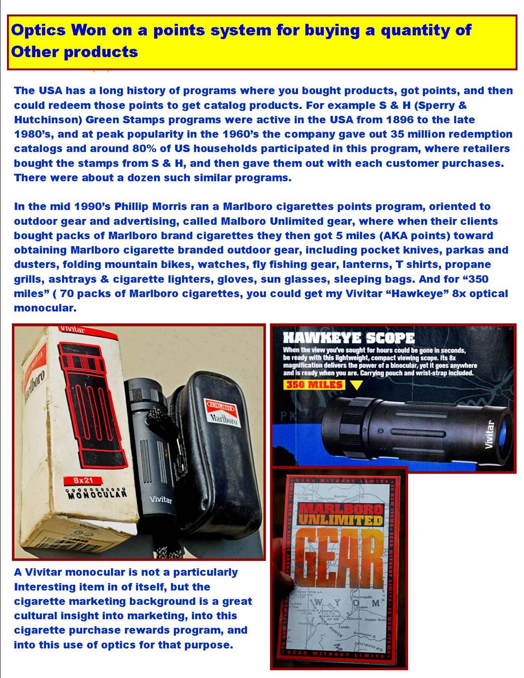 Within the consumer marketing of binoculars, there have always been intentional deceptions intended to appeal to customer perceptions. Like “SEE 100 MILES WITH THESE !” (everybody can see the moon with their naked eyes, and the moon is 237,674 miles away, which makes the boast quite silly). Or my “ ZEISE ” binoculars (which were intended to be confused by consumers with Zeiss) with “ ARMY & NAVY ”markings (pure nonsense), and “ DAY & NIGHT ”markings (no particular features for night performance) and “ GERMANY ”marking (possible made there, but also may be just more deception and branding since it does not actually make the claim “made in Germany”). I like these as over the top marketing. |